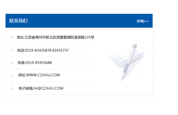 傳真:0519-83435688    郵編:213135    網址:WWW.czjhgj_com.jyxszs.com    電子郵箱:JH@czjhgj_com.jyxszs.com